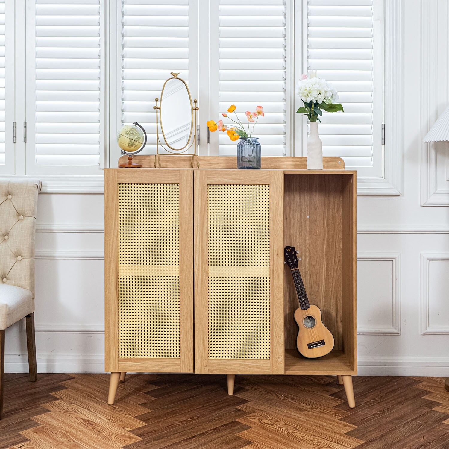 - Retro Style: oak color finish and faux cane door give you a hometown countryside house feel.