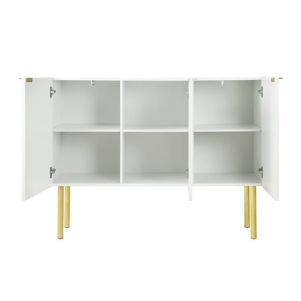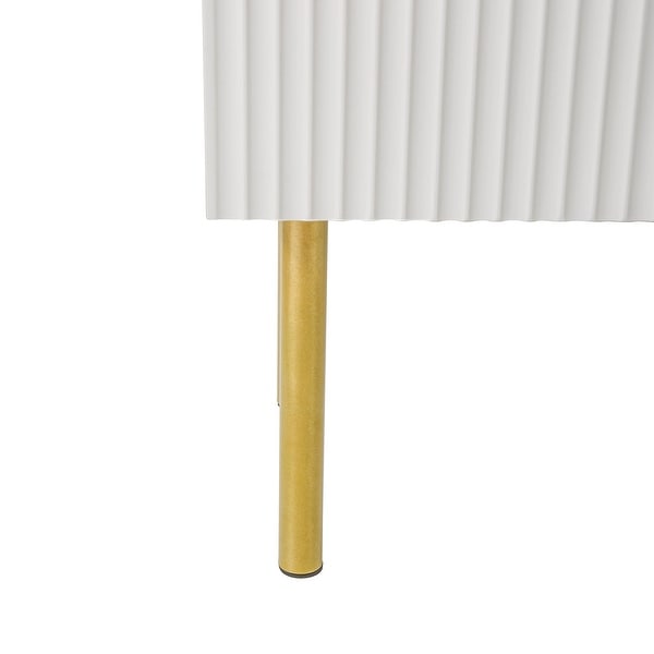 The design of this cabinet combines the features of modern simplicity and light luxury. Straight line, neat and smooth shape, simple lines, no many decorative elements, and pay attention to practicality. The pinstripe design on the door panel is elegant and understated, and the gold metal legs reflect the texture, in line with the characteristics of the light luxury style.